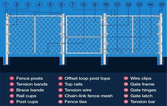 Posts: line / terminal / corner; top rail or top tension wire; bottom tension wire optional.